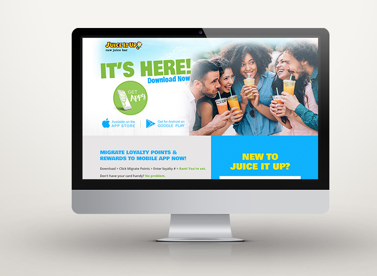 These landing page designs were created in Photoshop to highlight the launch of the Juice It Up! Mobile App.